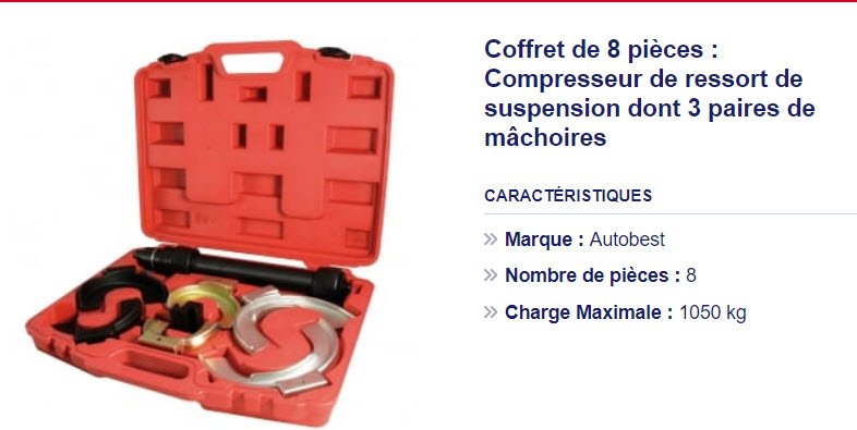 Je viens de voir une mallette de compresseur de ressorts, je pense, presque identique à celle montrée dans la vidéo de Oscaro.