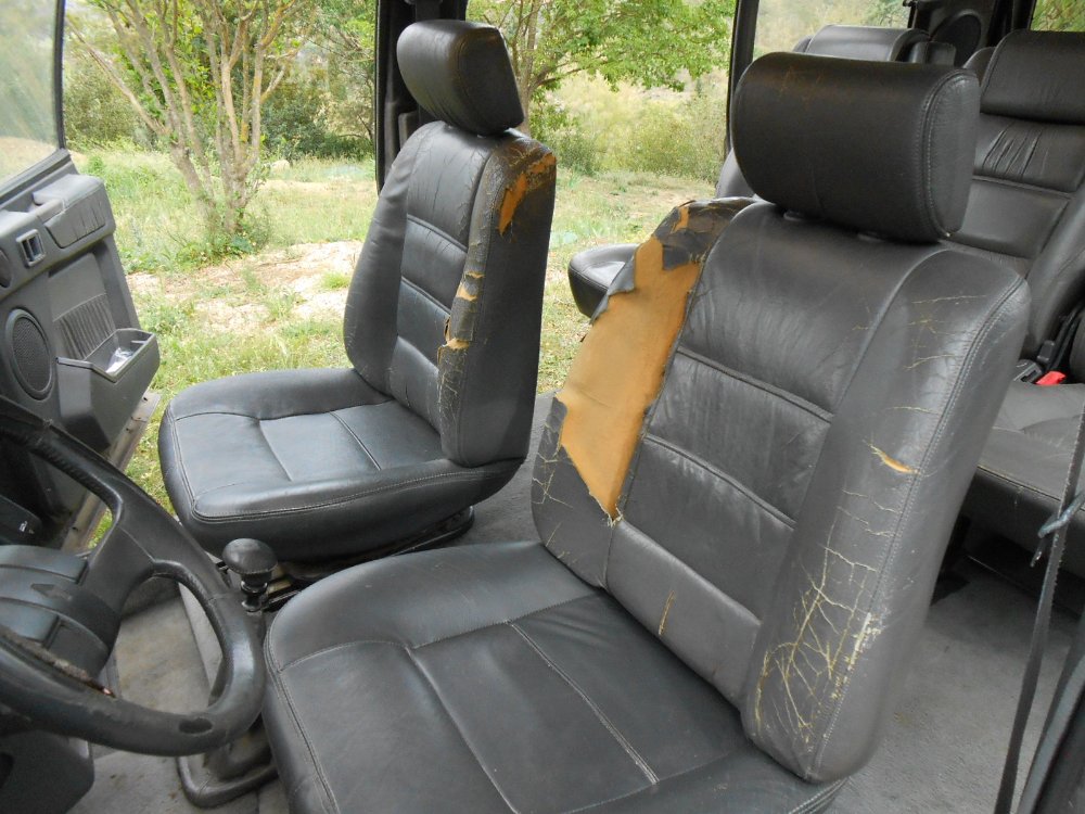 L'intérieur est en partie délabré (volant cuir refait en 2010, mais quand même totalement usé depuis), cuir des dossiers des sièges avant déchiré, assises refaites en 2010 et encore intactes, ventilation HS depuis des lustres, poignée hayon HS, joint d'un toit ouvrant pas étanche... Y'a un peu de boulot quoi!