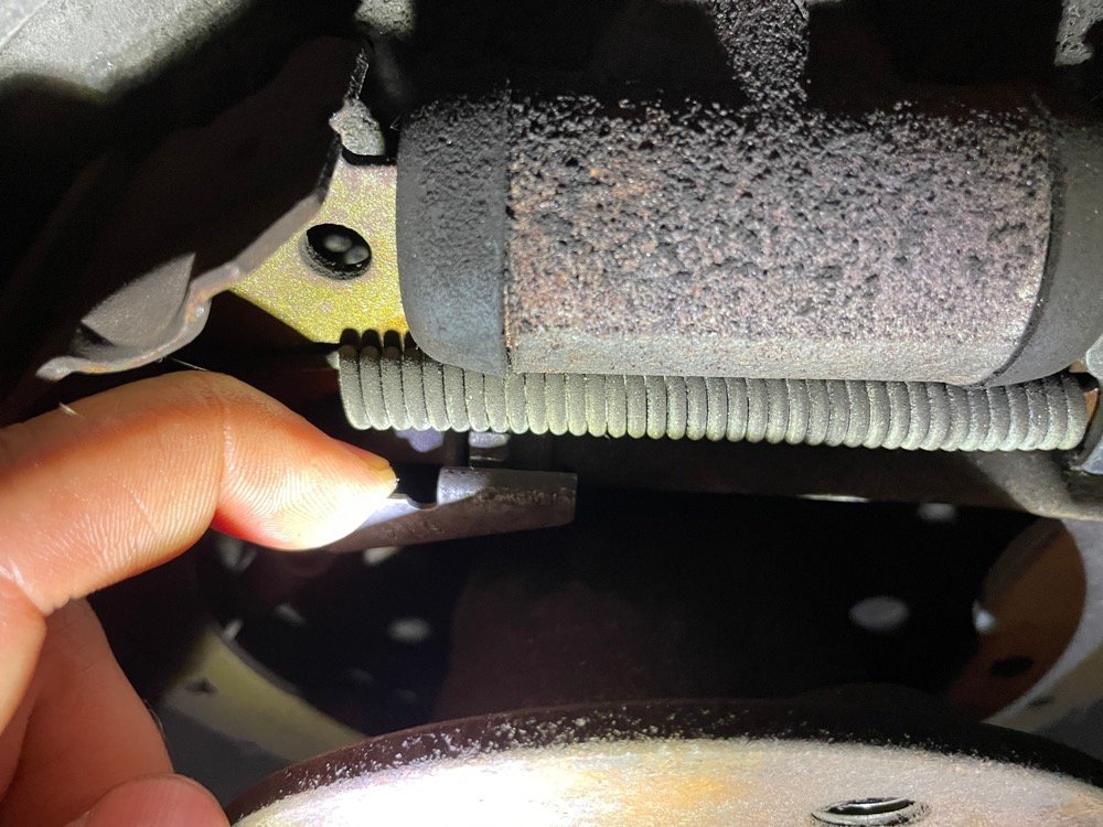 Enfin, dernier détail, les vis de rattrapage des deux côté semblent à leur position la plus courte. Vu ma course de frein à main et mon ressenti à la pédale, je pense que ce n'est pas normal.