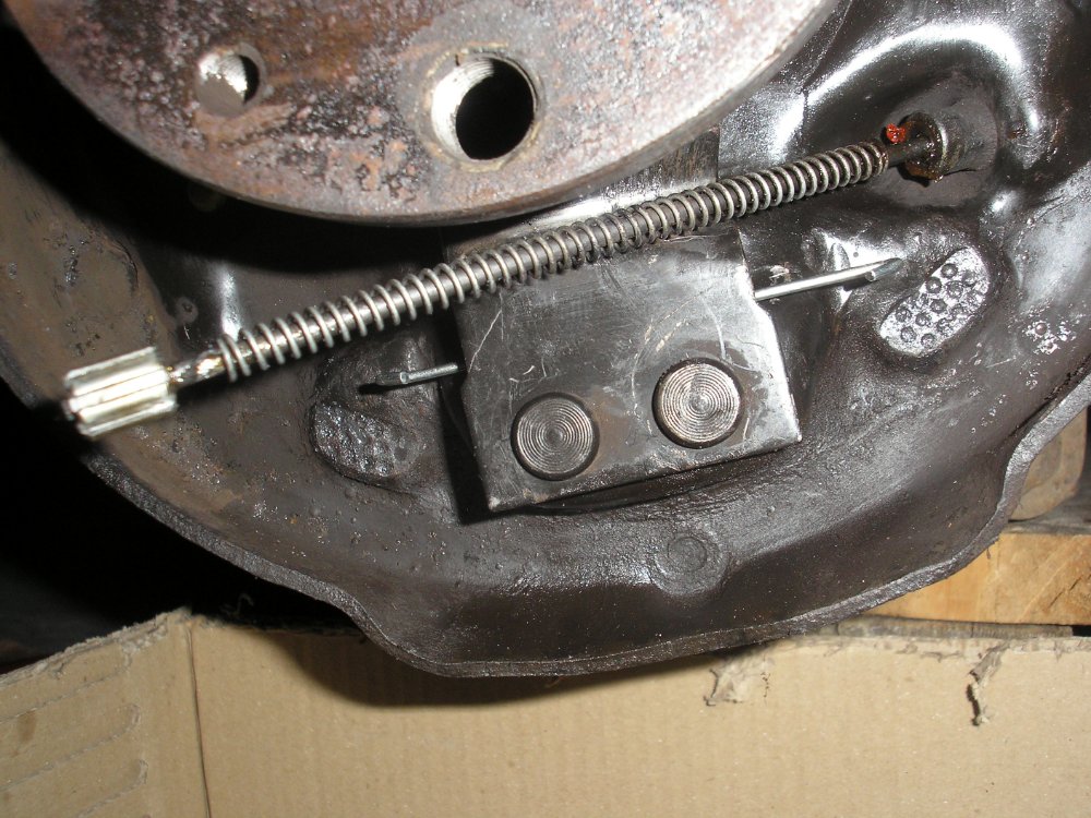 ) me rappelle que j'ai changé le kit de frein complet (garnitures + cylindres, y compris les cables de frein à main) il y a tout pile 4 ans et 40 000 km. J'ai roulé passablement chargé avec la voiture (en configuration 7 sièges la plupart du temps), donc les garnitures ont bien été rodées. Tout semble en très bon état et bien poussiéreux au démontage, jusque là, rien d'anormal.