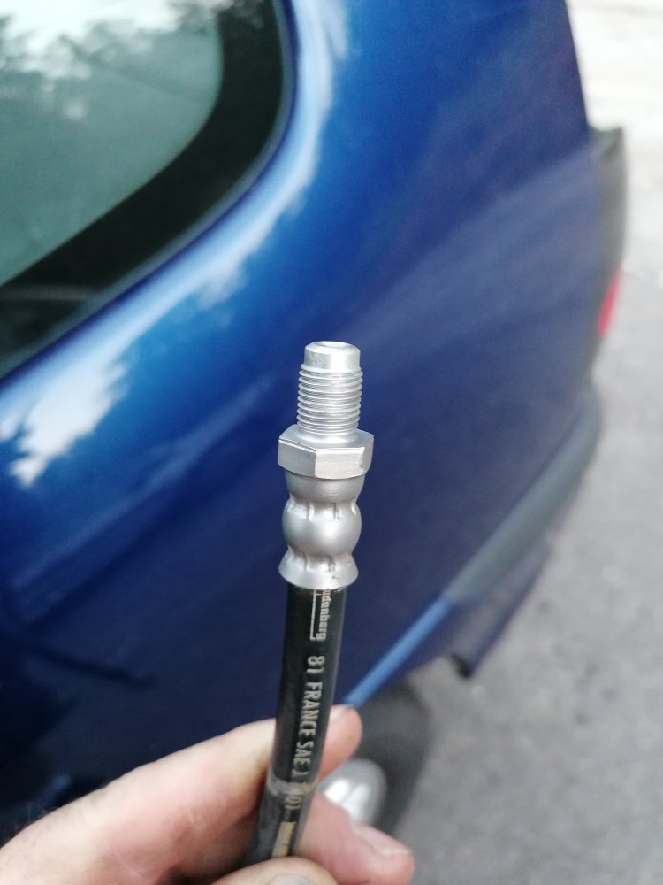 Donc démontage de l'étrier..... Le tuyau de frein, ben s'arrondit et je pète un câble :twisted: