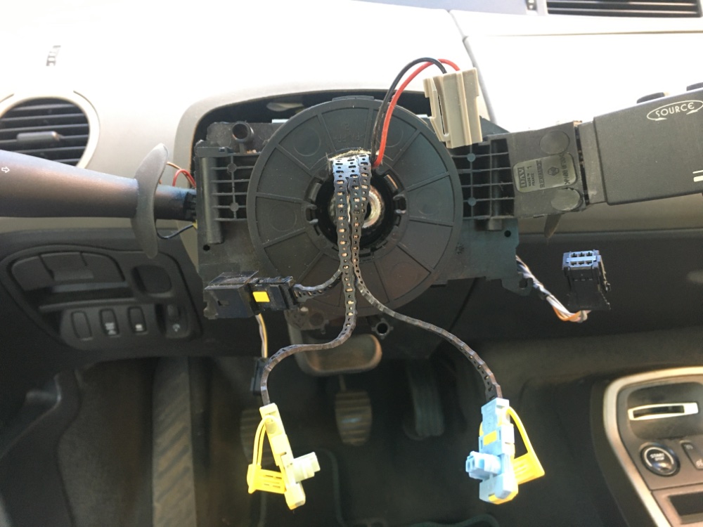 Il est effectivement nécessaire de déposer le volant pour retirer le contacteur tournant (débrancher la batterie, attendre 20 bonnes minutes puis on peut déconnecter l'air-bag).