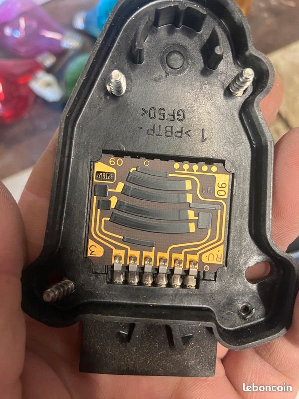 Après une rapide recherche, cette pédale d'accélérateur se trouve facilement. Un vendeur sur le Bon coin en propose une et a eu la bonne idée de présenter l'appareil ouvert (merci à lui pour les deux photos qui suivent) :