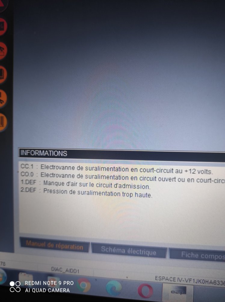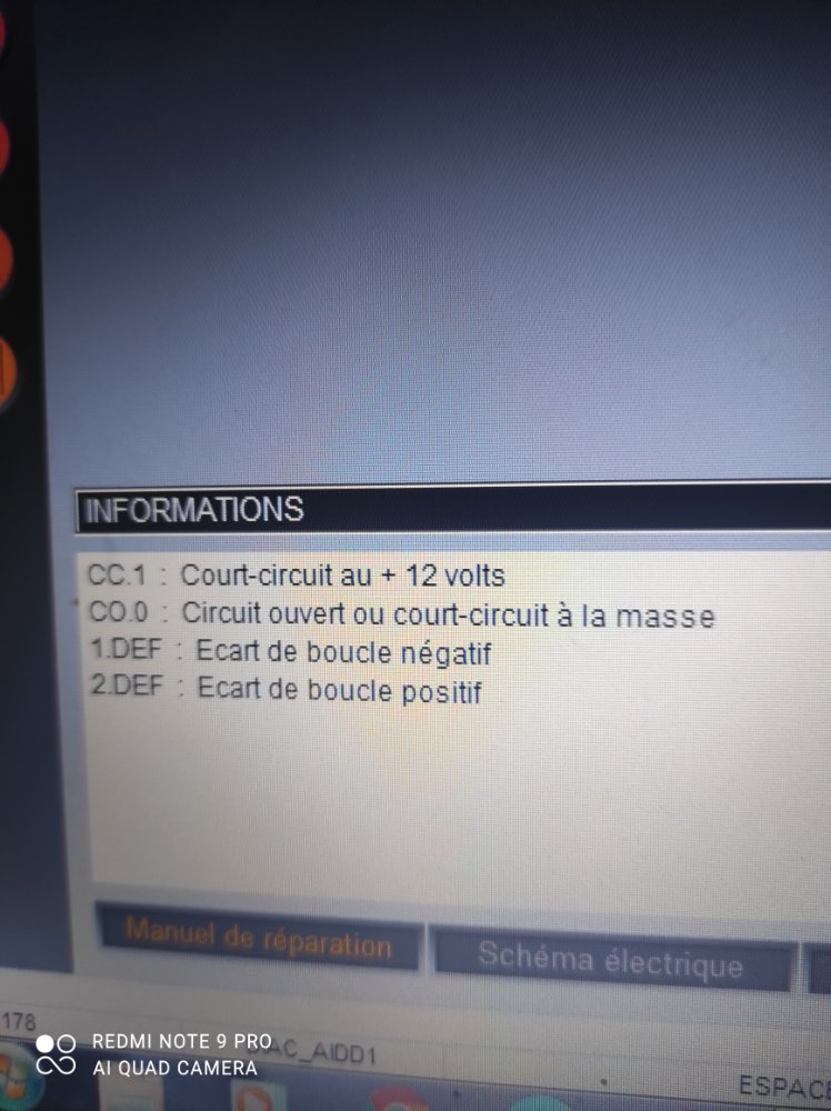 Jamimi65 a écrit : 31 mai 2022, 14:49 J ai réussi à effacer les message et défaut injecteur et le message c est mit lors ce que la clim est en route et j ai un défaut qui apparaît avec clip cam voici la photo
