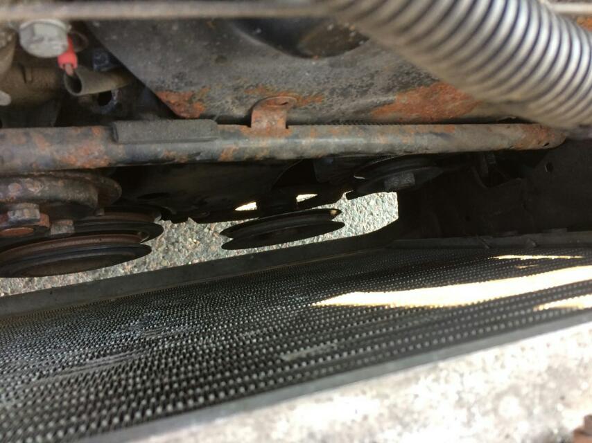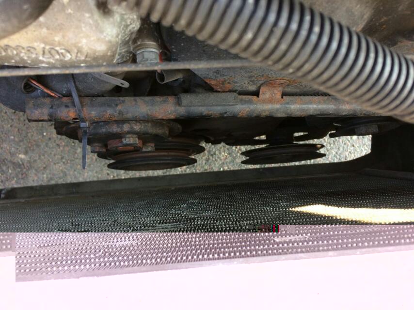 Là,je m'arrête sur une portion assez large réservée au camion et j'ouvre le capot. Je trouve la courroie de direction encore accroché /coincé derrière la poulie.
