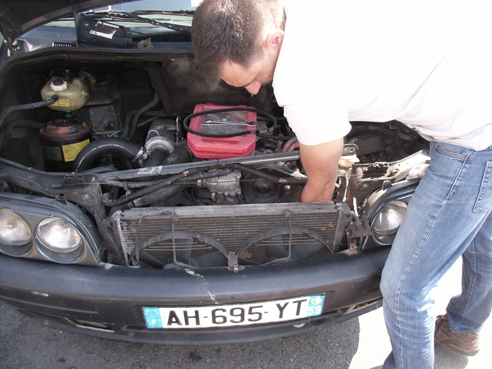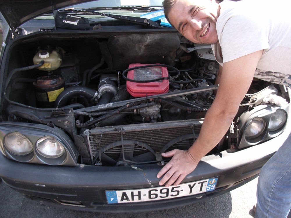 1km après, moteur quasiment en haut en température et courroie de direction qui pète aussi