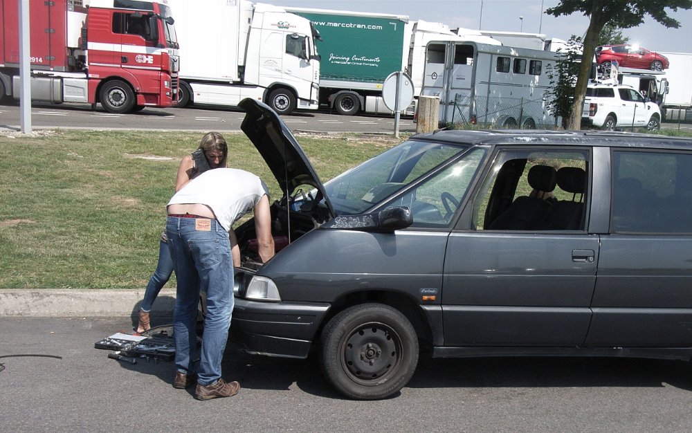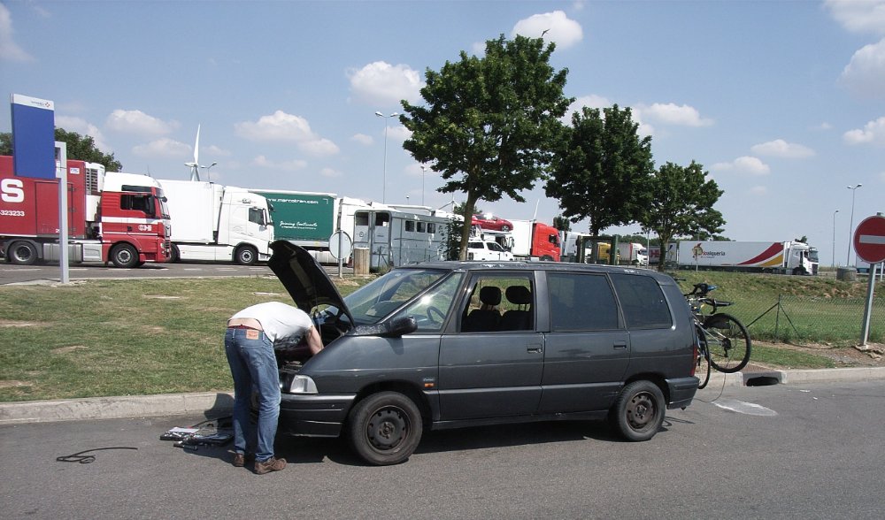 Tout roule jusqu'à 3-4 km avant l'aire de repos des plaines de Beauce je crois. Courroie d'accessoires qui pète. Donc voyant batterie qui s'allume et moteur qui commence à chauffer....