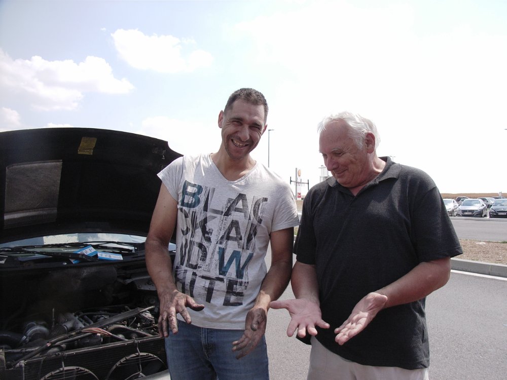 Je lui explique ce qu'il nous arrive et il me me dit que Gérard n'est pas très loin, enfin une bonne centaine de bornes aller/retour quand même. Il l'appel, lui donne mon numéro et Gérard nous rappelle 10-15 minutes après.