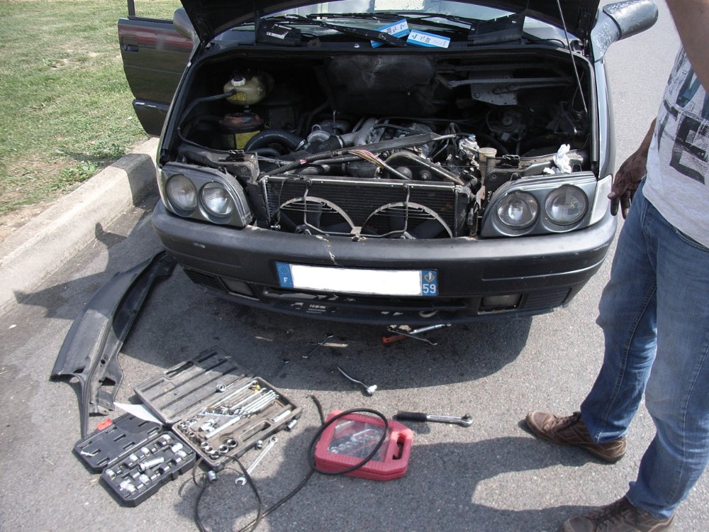 je le rappelle et il me dit faut descendre le par choc. Tout compte fait, j'ai quand même réussi sans l'enlever mais en décalant à fond la radiateur à gauche.