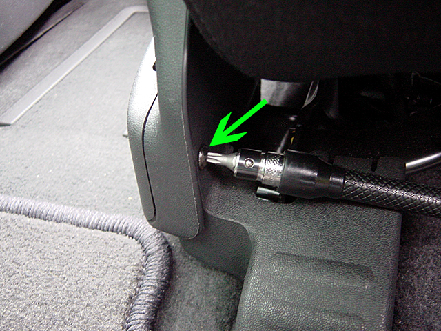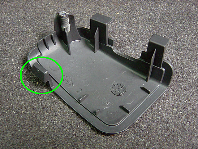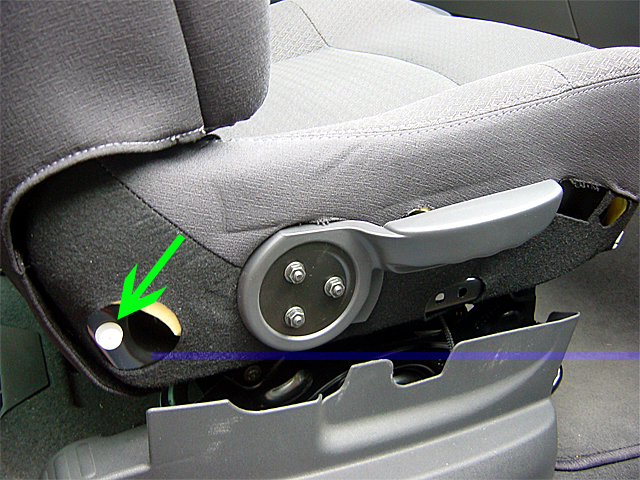 8. Retirer la garniture coté extérieur : retirer la vis située à l'avant du siège (TORX). La garniture est maintenue par 4 agrafes en plastique. Pour les retirer, il suffit de passer la main par l'intérieur du siège et d'enfoncer une douille de 7 sur la partie dépassant de l'agrafe. Son diamètre va alors être réduit et l'agrafe intacte ressortira par le trou et pourra être réutilisée. Sinon la méthode de bourrin : tout arracher et racheter ces agrafes chez Renault à 1,69 Euro l'unité !