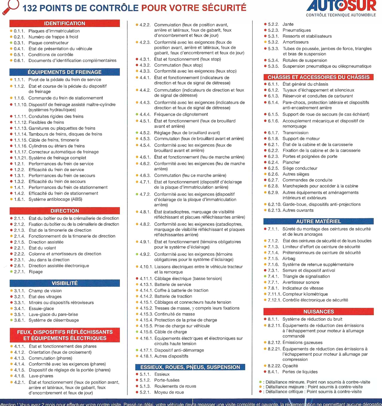 Il y aura 139 défaillances mineures, 340 majeures (en orange et avec un délai de 2 mois), et 127 critiques (en rouge et ce fameux délai de 1 jour pour amener le véhicule au garage.