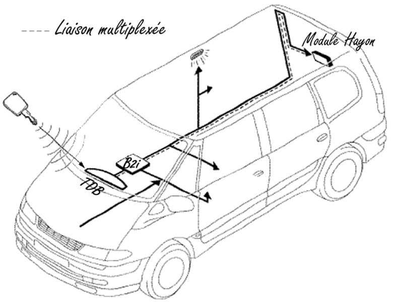 - le code de la radiofréquence (TRF) puis envoie l'ordre au boîtier interconnexion habitacle l'ouverture ou la fermeture des portes.