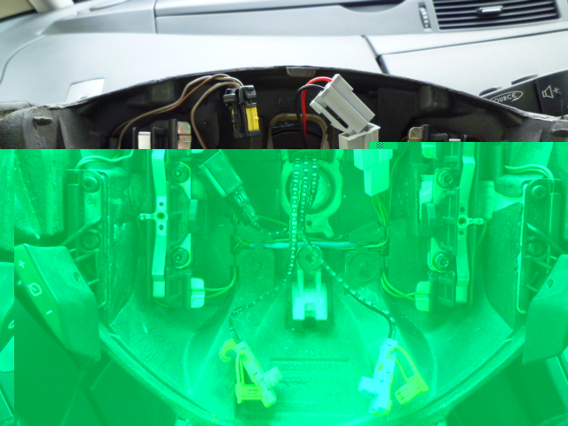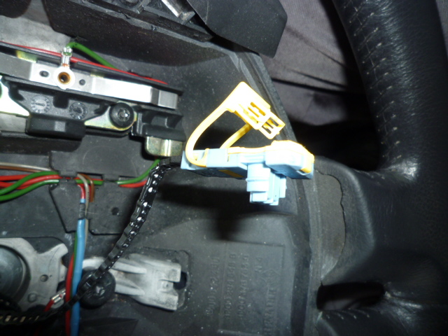 Débrancher les 2 prises de l'airbag en haut bleu et vert.