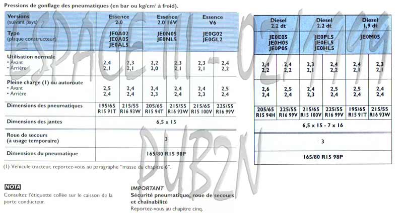 t'as les espaces court, long, essence en trois motorisations différentes amis qui pouvaient etre équipé en GPL et/ou d'une boite auto et le diesel en une motorisation et qui à été modifiée par la suite au niveau puissance/couple