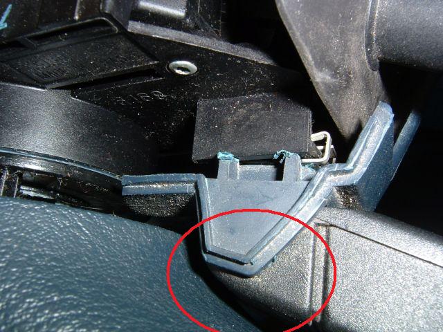 pour revenir au démontage du tableau de bord, je n'ai pas réussi à démonter complètement la coque inférieure autour du volant : elle reste coincée par le levier de commande de la radio, et je ne vois pas comment la dégager :