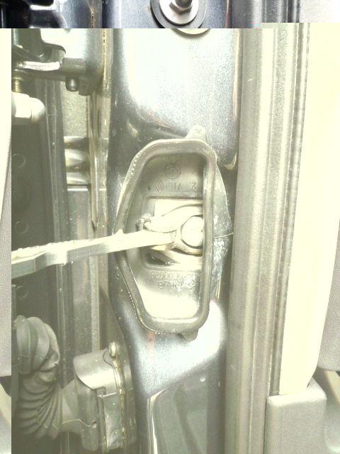 Démonter le cache du haut-parleur de la portière. Sortir celui-ci sans le débrancher. (clé torx T20) dévisser l'arrêtoir (clé de 10 et torx T40) l'attacher avec une ficelle. Le récupérer par le trou du haut-parleur. Attacher le neuf et réaliser l'opération en sens inverse.