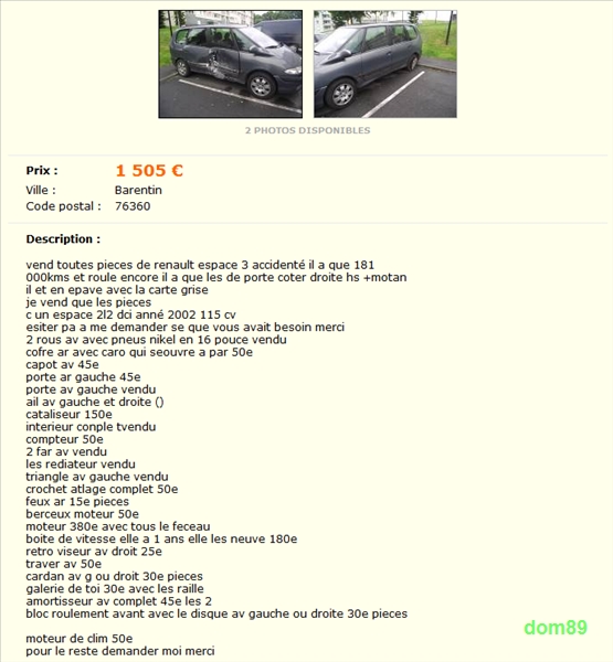 Et encore des Espace I, II, III, IV... en fait plusieurs because job => démonteur ou plutôt recycleur d'Espace...