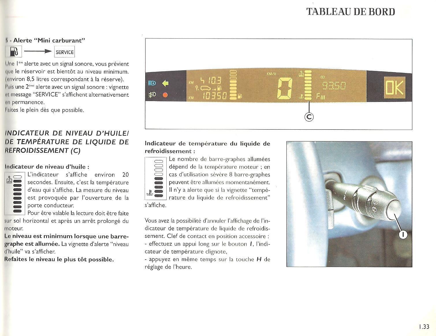 Pour obtenir le niveau d'huile, tu appuies, après le démarrage du moteur, sur l'extrémité du comodo d'essuie-glace. C'est tout !