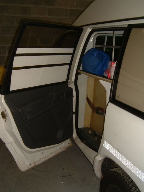 Une vitre sépare le conducteur de ses passagers, au dessus des sièges avant un espace de rangement (une petite capucine :wink: )