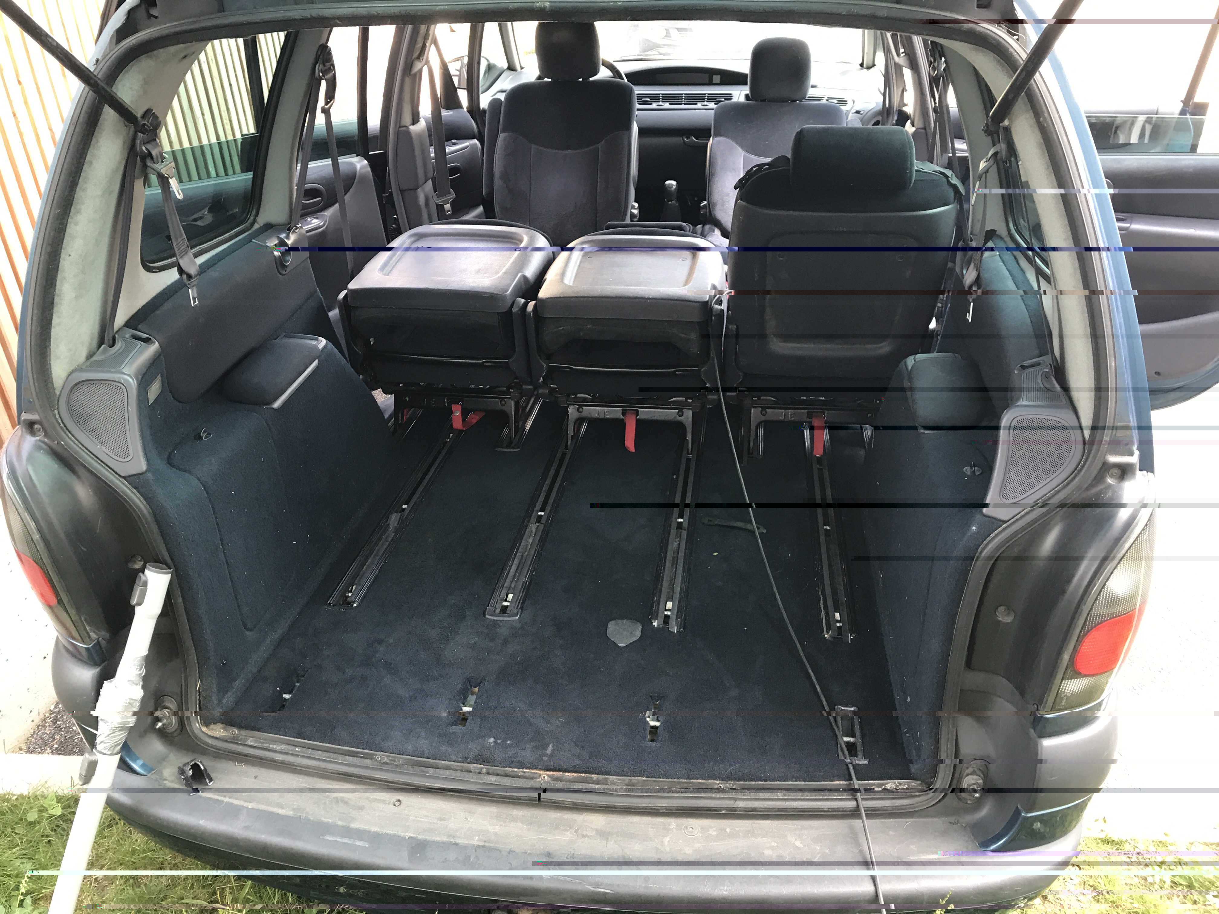 Pour le coup des sieges j'avais deux sièges à la rangée du milieu et deux dans le coffre. En faite ceux du coffre étaient juste posés et non arrimé. Et bien sur impossible à arrimer parce que sièges d'espace 3 phase 1... donc du coup je disposais que de 4 places dans mon Espace : le conducteur et 3 passagers... ça craint un peu pour un Espace. Donc recherche sur le bon coin et hop 3 sièges de phase 2 à 10 borne de la maison, négociation faite avec un rabais de 50% ce qui fait 50€ le lot de 3 sieges donc du coup j'ai un vrai 7 places !
