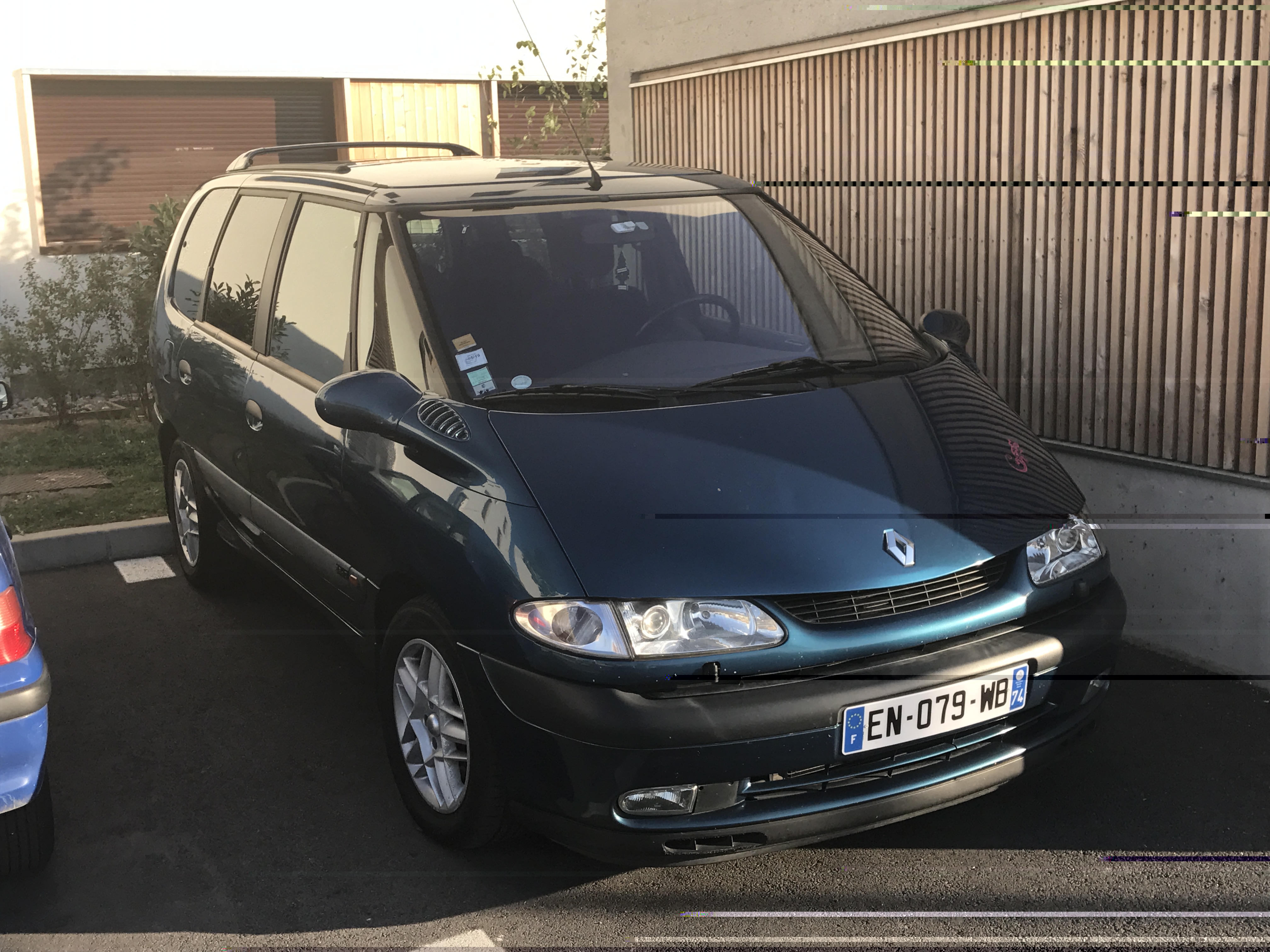 Et celui avec le quel on roule actuellement, il a une place à part car on l'a eu sur un coup de tête, c'était pas prévu. Il passe pour un canard boiteux avec sa peinture qui part en lambeaux, ses éraflures etc. Mais voilà, c'est un survivor laissé pour mort par son ancien propriétaire. Je l'ai su car j'ai pu contacter son ancien propriétaire pour un renseignement. Quelle ne fut pas là surprise d'avoir des nouvelles de son ancien Espace. Tombé en panne d'embrayage dans la région et déposé au garage par l'assistance. Lui et sa famille son reparti chez eux en laissant l'Espace en panne. Il pensait avoir signé un bon pour la casse sur le certificat de cession mais le garagiste à réparé de son côté et remis l'Espace sur le marché de l'occasion et nos chemins se sont croisés ! Et je le trouve beau !