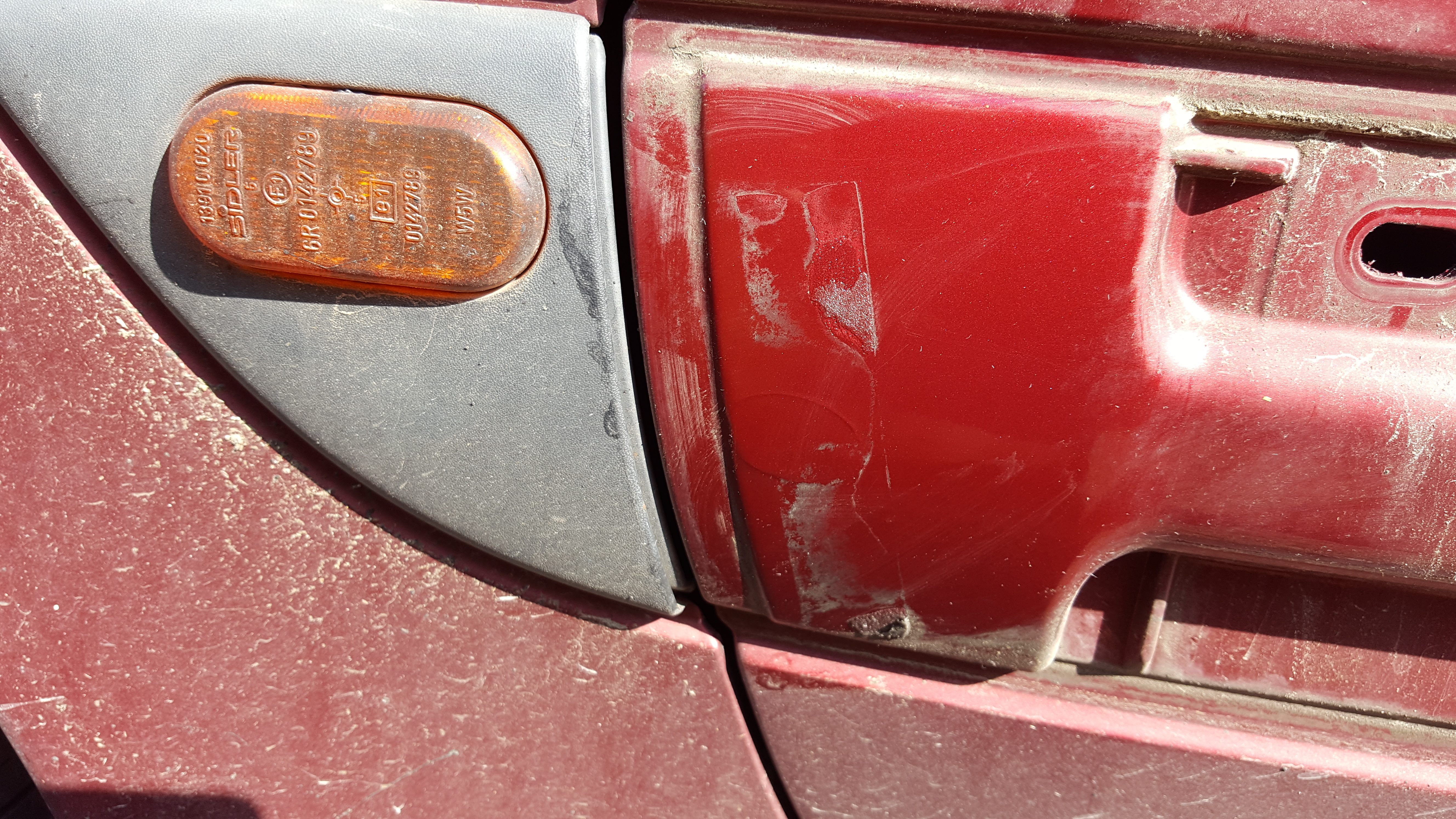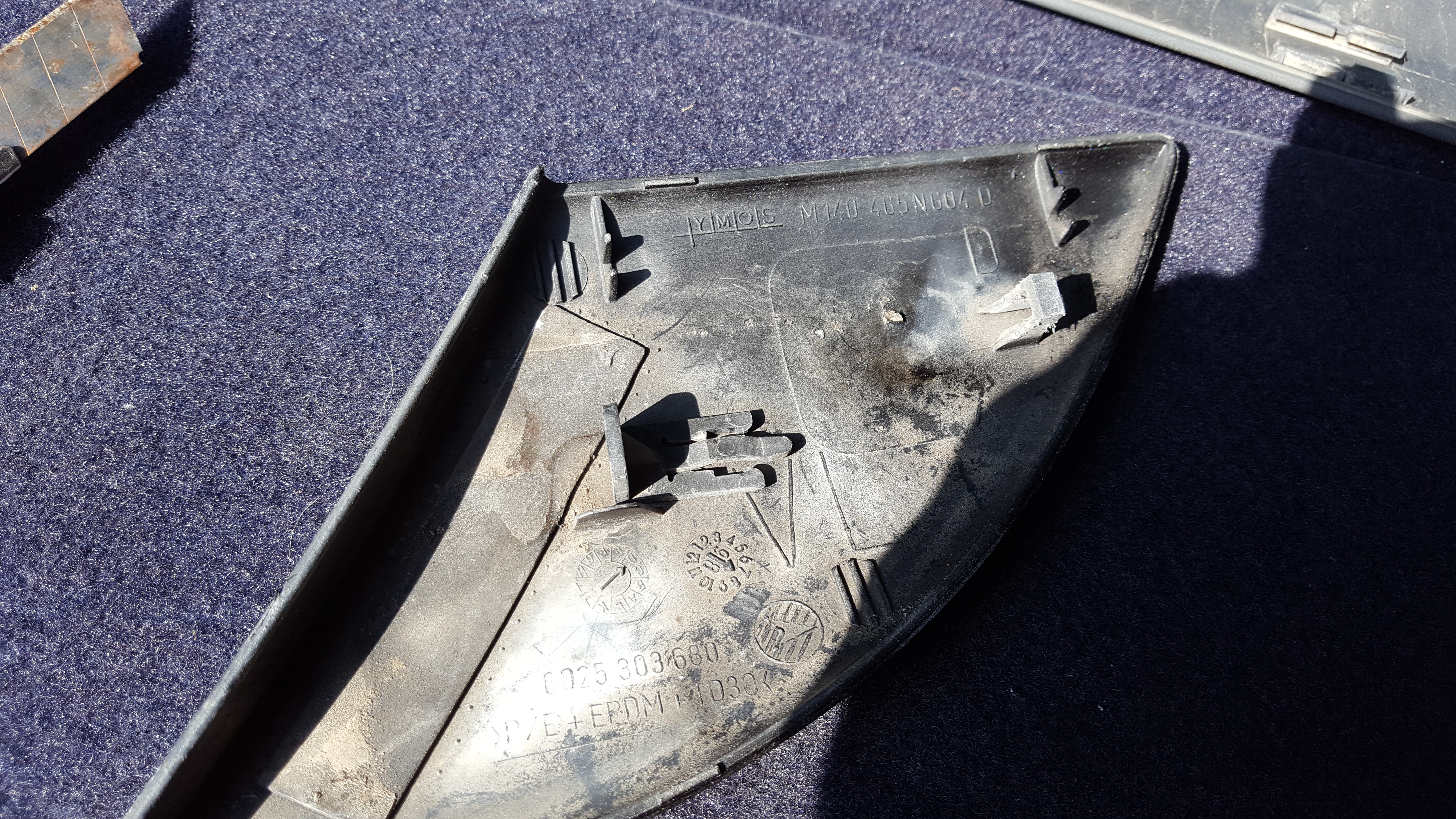 La baguette d'aile arrière est fixée par un clips en plastique et un double face vers la portière