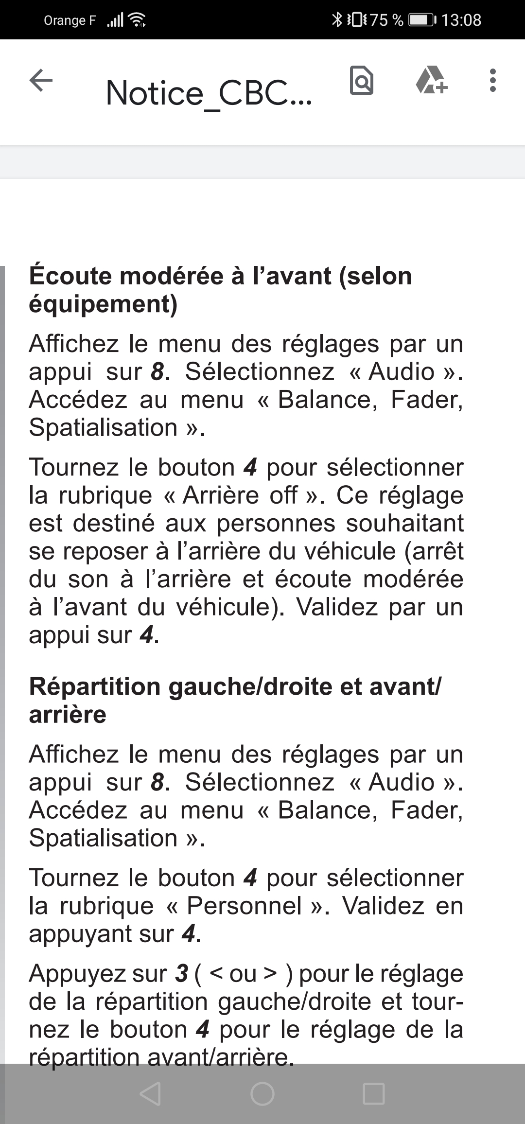je vais insister, mais à tu au moins lu la page 39 de la doc et cherché si cette option est disponible sur ton autoradio