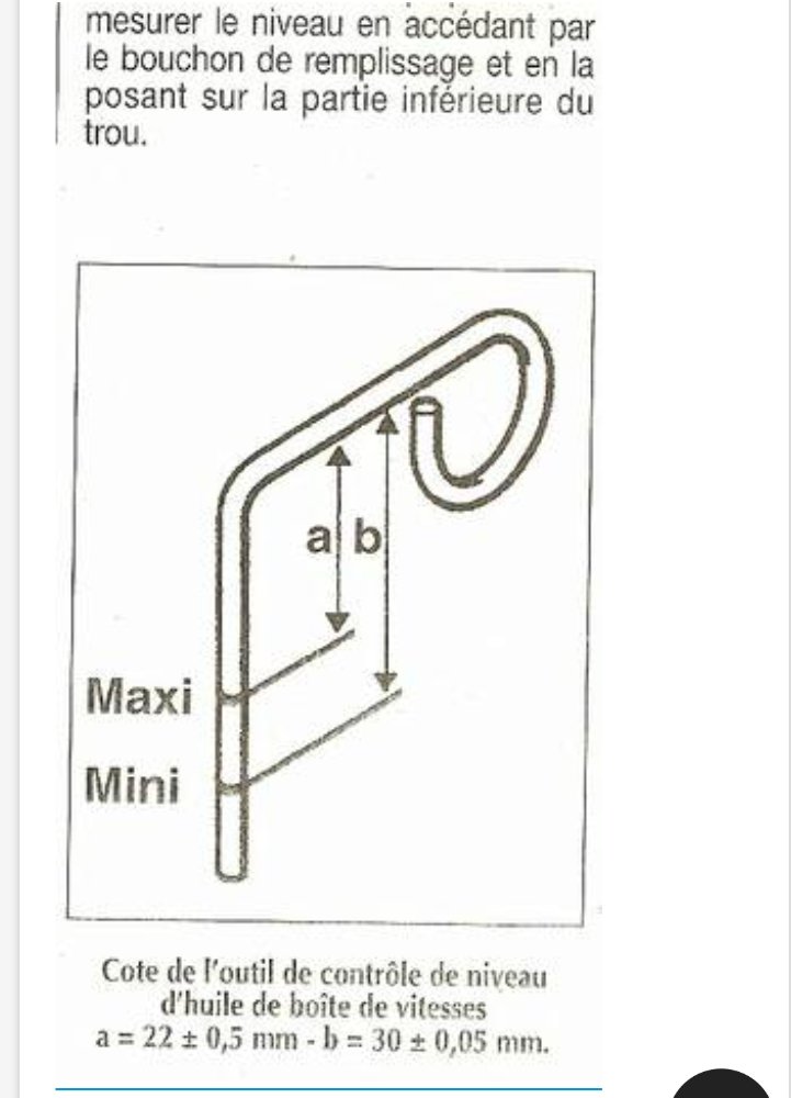 L'huile de boite pour PK est de la ELF NFP 75W80 2.5 L environ. Le niveau ne se fait PAS par débordement, il faut se créer une jauge. Le niveau est entre -22 mm et -30 mm par rapport au bas du trou de remplissage.