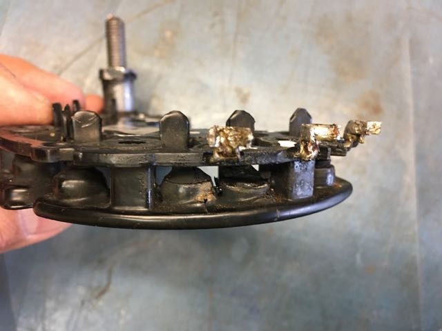 • Inspection visuel sur le pont de diodes: PAS OK (regarder les photos), test diodes: PAS OK