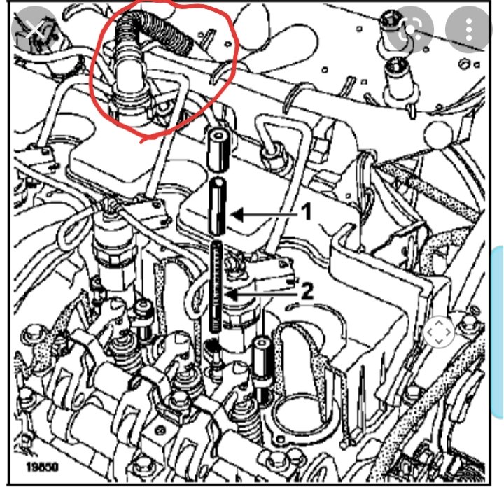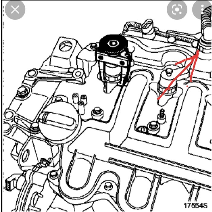 A l'arrière du répartiteur, tu as la partie décantation des gaz carter intégrée. Et donc tu as un tuyau qui sort vers l'arrière qui longe la rampe haute pression (sous la protection injecteurs) et il va se brancher avec un encliquetable sur le tuyau d'air entrée turbo. Il faut vérifier si ce tuyau côté répartiteur n'est pas débranché ou fuyard (coupure ou poreux).