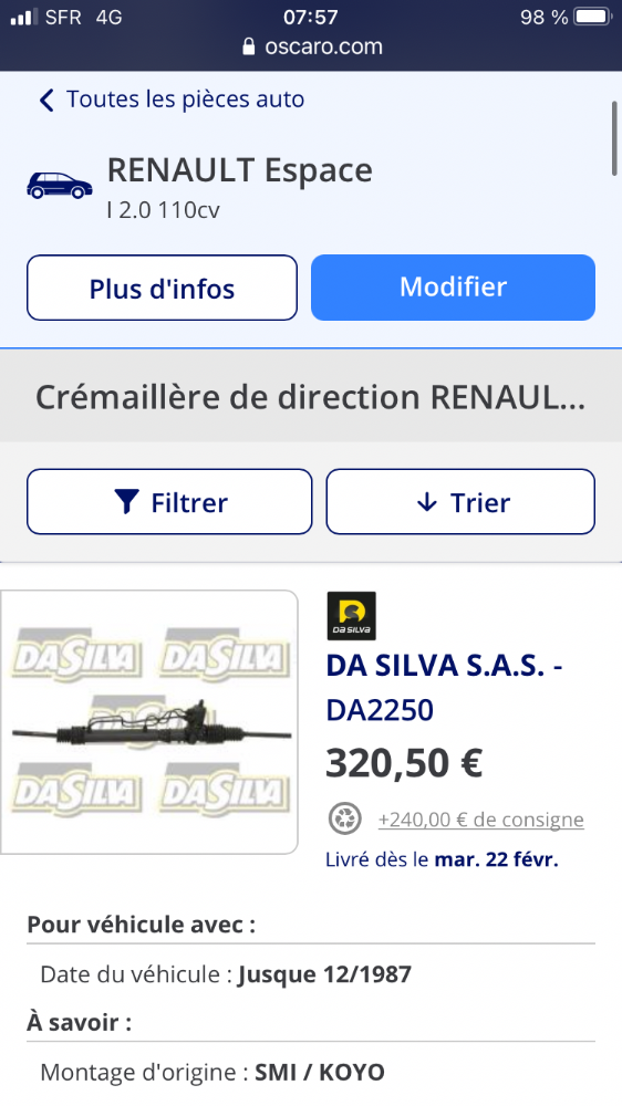 J'ai aussi un problème de fuite sur ma crémaillère de direction sur mon espace de 1986 signalé lors du contrôle technique. Est-ce que la DA2250 est la bonne pièce ?