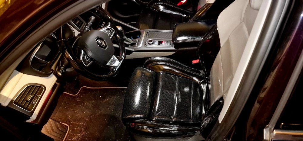 Résultats après avoir enlevé le surplus c'est bluffant la souplesse du cuir après, j'avais déjà publié il me semble sur l'espace IV V6 le même traitement ( moins flagrant du à la couleur beige du cuir )