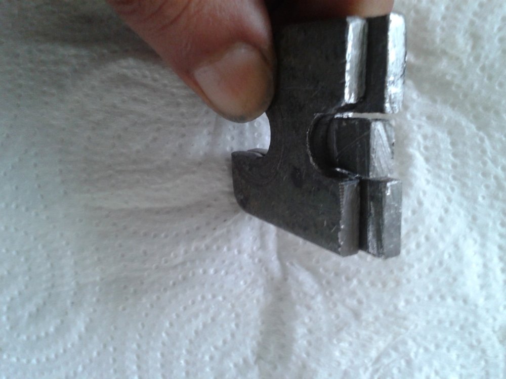 C'est un bout de la même plaque de ferraille que j'ai calé dans l'espace entre le caoutchouc et l'équerre qui a réapparu en levant le moteur (épaisseur 4mm):