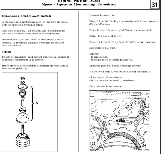 au cas où, est-ce que ça te parle ça: Aussi on m'a souvent parlé des rotules supérieures sur ces modèles, apparemment elles s'usent très vite même parfois des neuves prennent du jeu au bout de qq kilomètres...