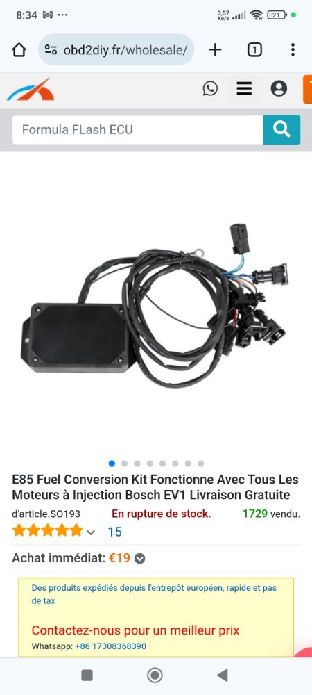 J'ai vu ça... Je voulais en acheter un 2eme pour un copain, du coup j'hésite. Je me dis que c'est peut-être dû à la récente flambée des prix des carburants, les gens se jettent sur les kits E85 et les vendeurs en profitent, j'espère que cela ne va durer qu'un temps et qu'on retrouvera des prix plus raisonnables bientôt. Je ne crois pas qu'il y ait de bonnes raisons pour que cela coûte 200€, il n'y a pas grand chose dans la boîte, ça serait d'ailleurs intéressant de mettre un oscilloscope sur les fils des injecteurs en entrée et en sortie du boîtier, je parie que ça rajoute ~20% au démarrage, puis ça doit tomber à +5 ou 10% au bout de 5 minutes d'opération. Je serais curieux de connaître le résultat si quelqu'un a le courage de faire ça...