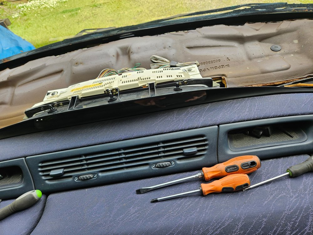 il est du coup depuis hier complet reste une grosse remise en état a prévoir le moteur tourne comme une horloge tous est fonctionnel sauf l'embrayage qui et mort, la distribution est a faire, une batterie a prévoir et la lunette du hayon que j'arrive pas a ouvrir le coffre lui fonctionne très bieǰn