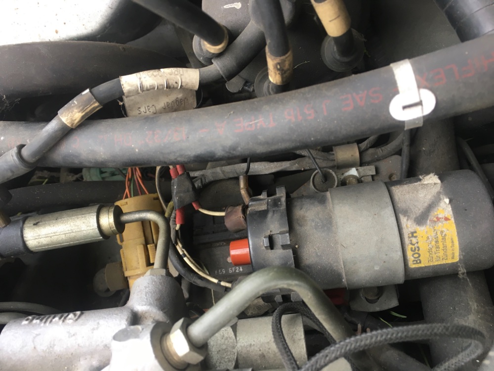 Il m'a aidé à la remorquer jusque chez mon grand-père (2 km environ), au dessus de Grenoble, où elle m'a attendu jusqu'au début de la semaine dernière. En plus des soucis évoqués précédemment, je vais devoir refaire le système de carburant (j'ai commencé, je confirme le besoin), d'allumage (pas d'étincelle, je table sur un PMH qui a sans doute été la cause de l'arrêt), ainsi que le pont arrière. Ce dernier fuit encore copieusement après tant d'années, tout entartré de noir qu'il est. Il y a peu de doute que les roulements de ponts sont morts et ont flingué les joints, c'est typique sur la semi double triangulation bien anglaise présente à l'arrière, cf les vidéos de Smells Like Gasoline. Une fois tournante, il faudra que je vérifie si le pont ronfle vers 110/120. Probablement