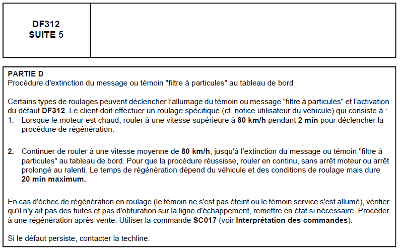Lorsque j'ai eu le code DF312, pour le supprimer, j'avais roulé en 4éme à 110km/h avec un régime moteur de 3200trs/min.