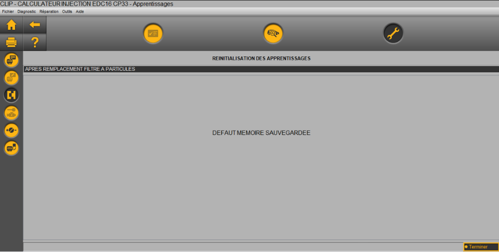 Lorsque vous dites " j'ai fait la procédure", vous avez lancer quelle commande ?blacksamourai a écrit : 29 nov. 2018, 20:47 Bon je donne des nouvelles alors dans mon cas après 9 tentatives de régénération (fap a 90gr) le calculateur c'est bloquer du coup impossible d'effacer le défaut.