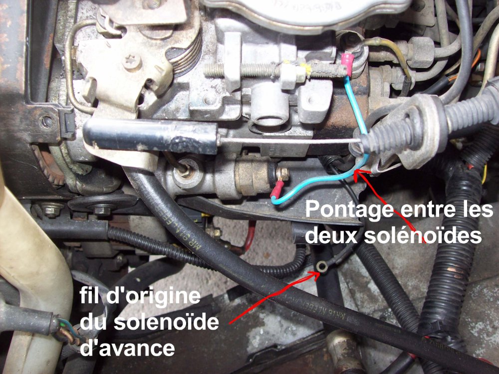 L'alimentation par un interrupteur du solénoïde d'avance "moteur froid" sur la pompe d'injection permet de rajouter de l'avance "à la demande"
