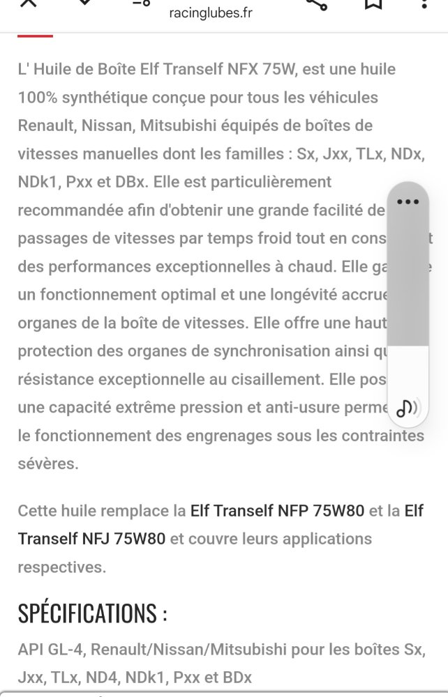 Re: Quelle huile boite de vitese en renplacement ELF NFP 75w80