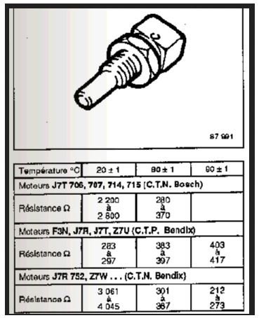 77 00 730 022 noir 2 connecteurs pour le calculateur d'injection , cette sonde est difficile à trouver car c'est une CTP ( résistance augmente quand la température augmente )