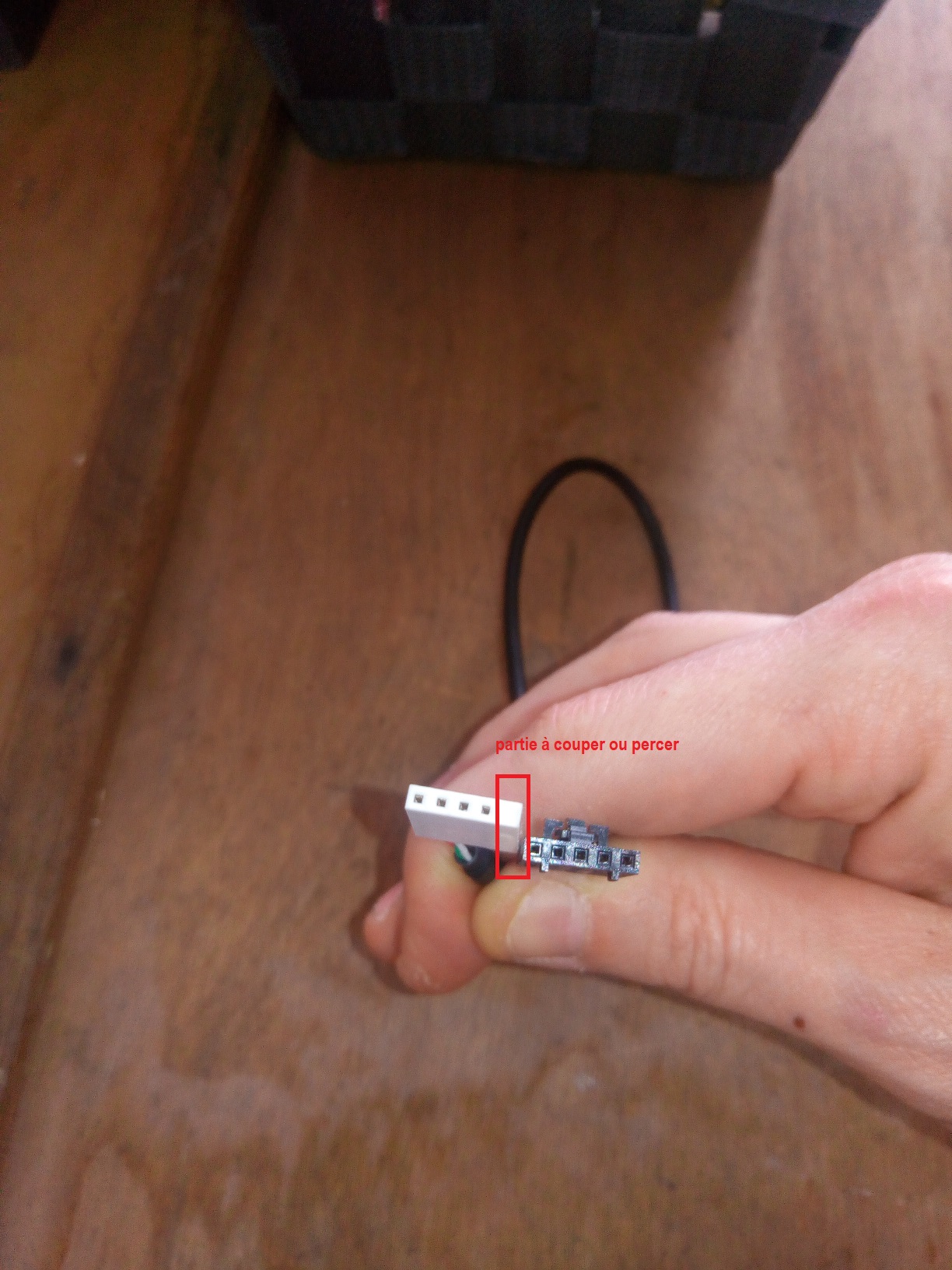 Donc oui tu coupes le fil qui sort du 5è emplacement de ton connecteur USB côté ampli, il suffit que tu vires 10mm du fil...