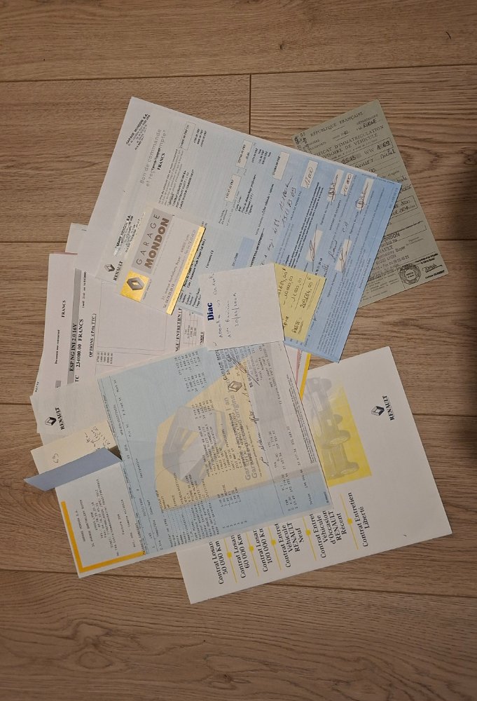 Cet exemplaire est en très bon état malgré ses 200 000 km et, surtout, il bénéficie d’un historique complet : bon de commande, facture d’achat, brochures d’origine et plus de 50 factures d’entretien réalisées exclusivement chez Renault.
