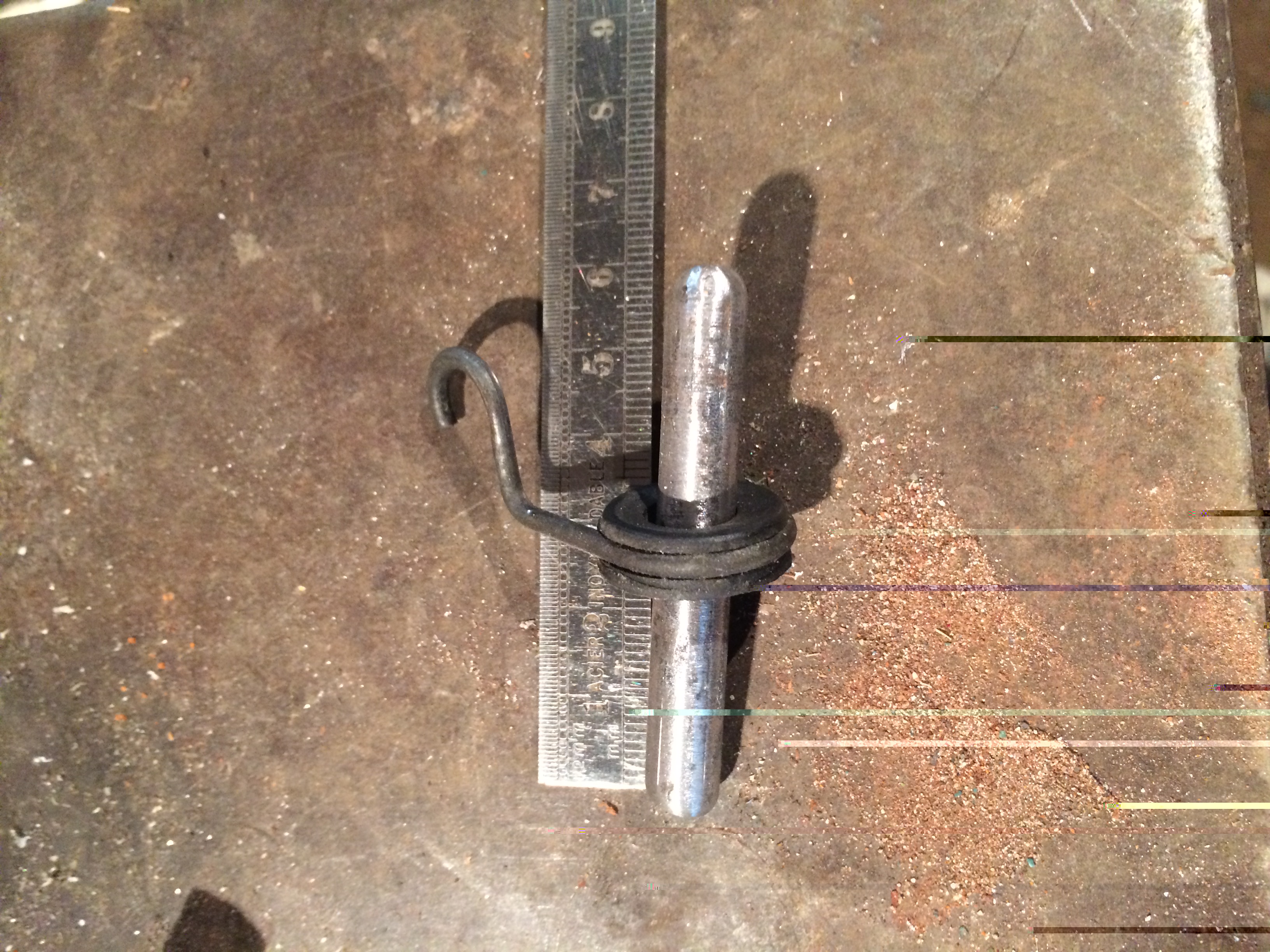 Le point d'accrochage en bakelite sur la pedale m'ayant peté a la figure, j'ai resolu le souci en perçant un trou de 3mm directement dans la tole !!