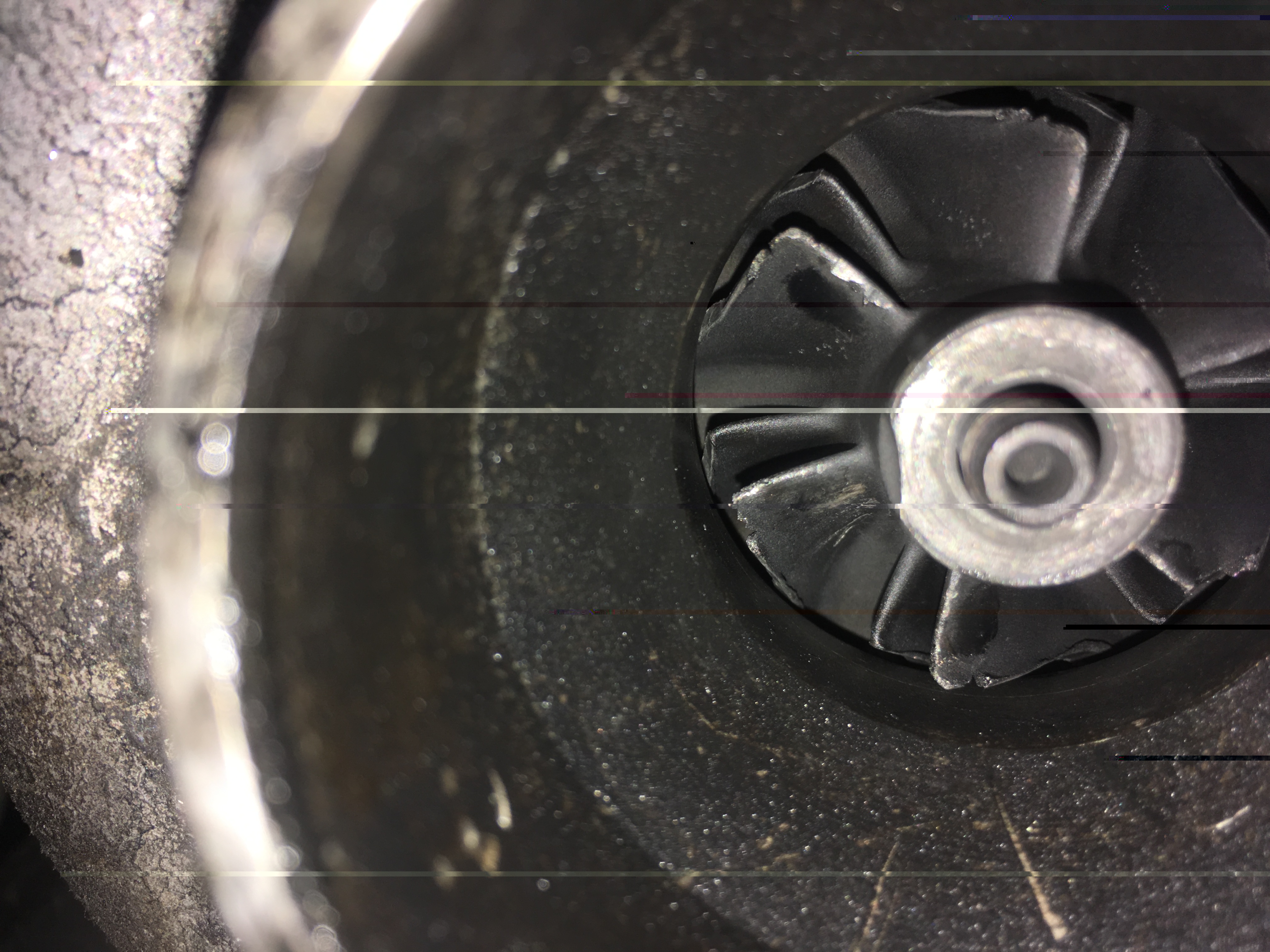 L'ecrou qui tient la soufflette s'est fait la male ... Dans les pieces que tu m'as donné, il y a bien un turbo d'avance, mais il a trop de jeu latteral : donc HS...