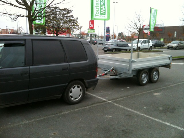 Ce soir j'ai récupéré une grande remorque double essieux car j'ai pas mal de placo à transporter,et la surprise...