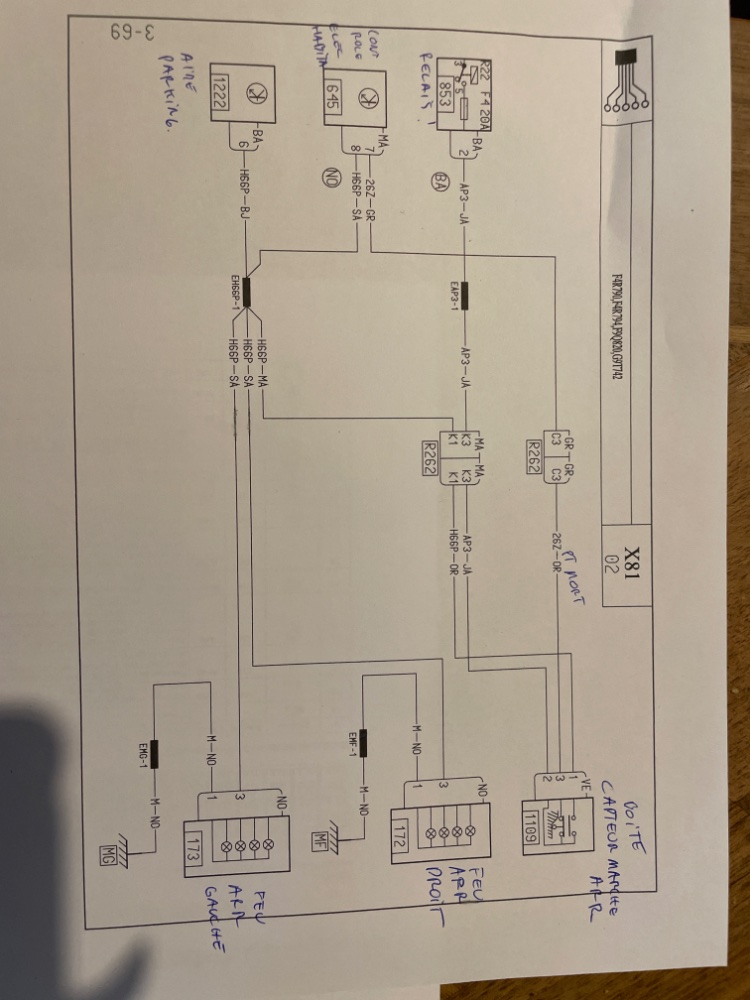 Sur les schémas j’ai déconnecté la pièce 1222 et la liaison R396. Ça merde toujours.