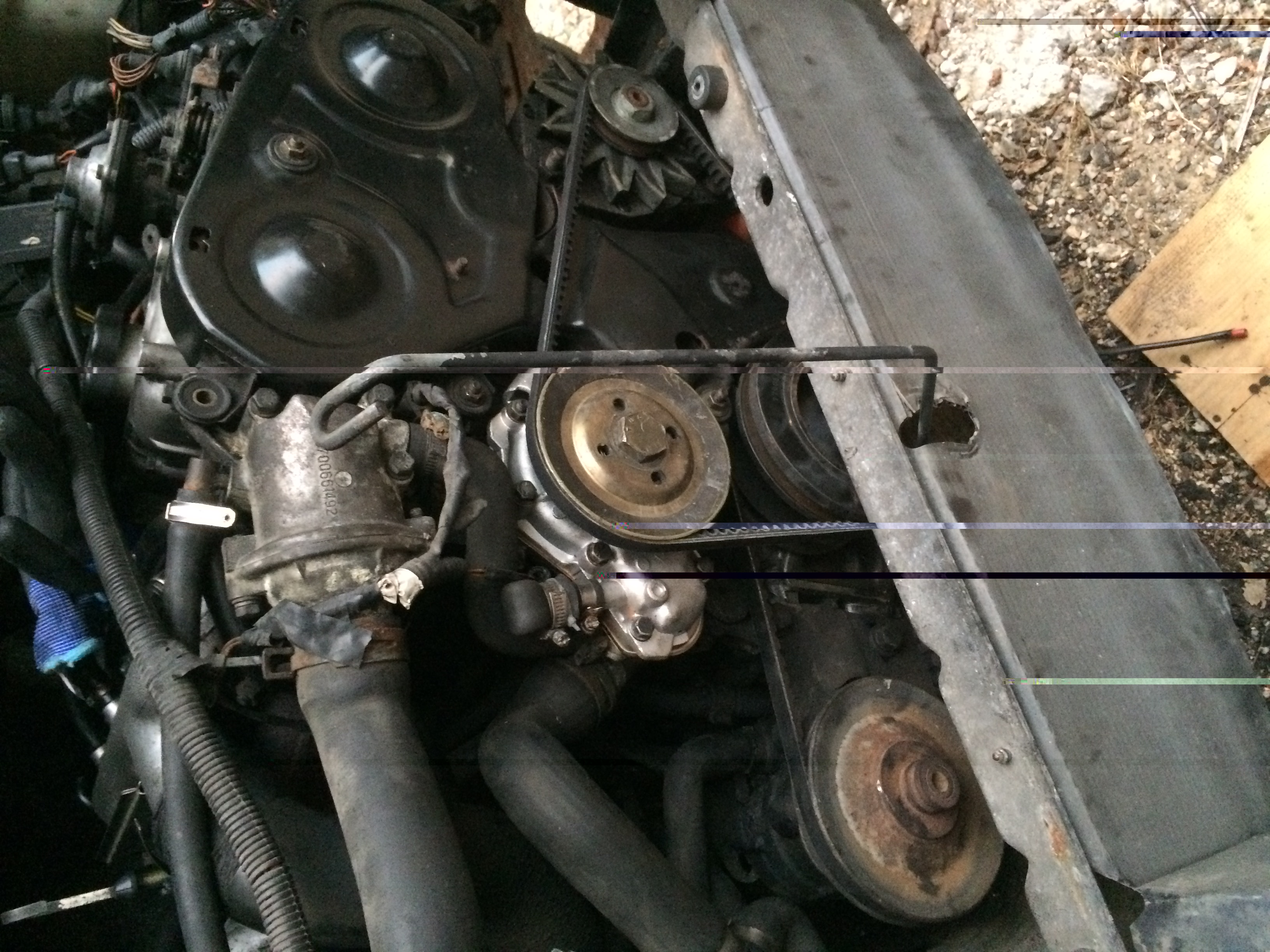 donc distibution faite , pompe a eau neuve , les courroies accessoires aussi , bon nettoyage de l'intercooler qui est mtn presque comme neuf ( surtout beaucoup moins obstrué) . Donc jusque-là ok mais petit probleme , avec daniel nous avons trouvés une durite raccordée a rien dutout et on ne voit pas d'ou est ce qu'elle pourrait venir