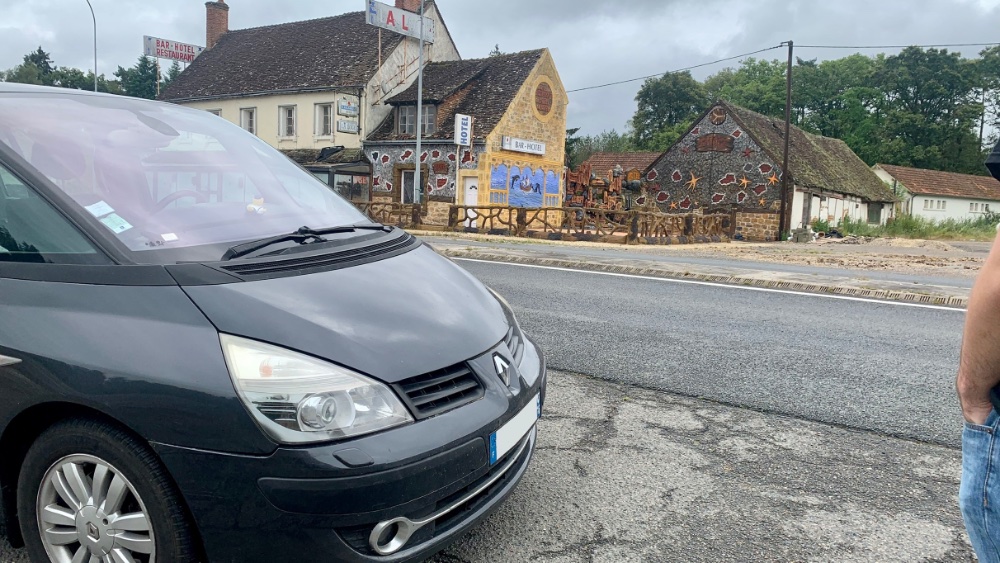 Photo souvenir lors d'un arrêt près d'un hôtel insolite proche de Romorantin et Vierzon :